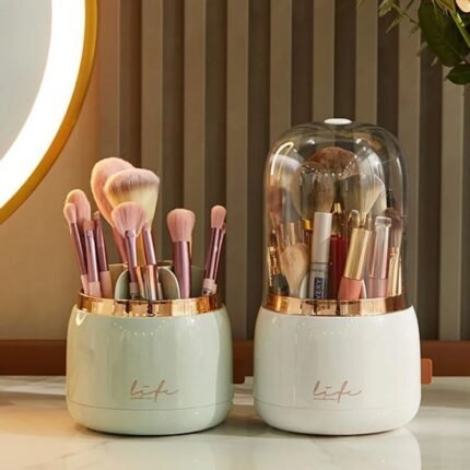 Porte-pinceaux de maquillage avec couvercle, rotatif à 360 °, boîte de rangement portable pour maquillage de bureau, outil cosmétique, conteneur à bijoux