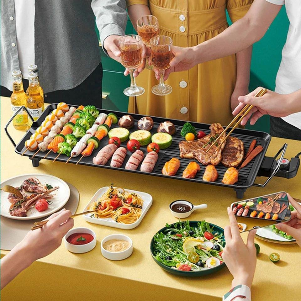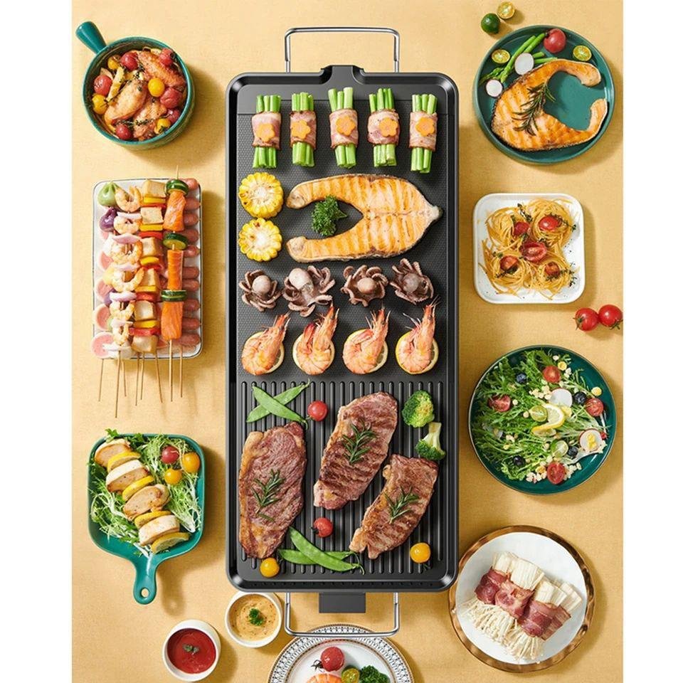Barbecue électrique Gril poêle sans fumée antiadhésive Barbecue Machine Viande grillée Cuisson Plaque chauffante ménage extérieur