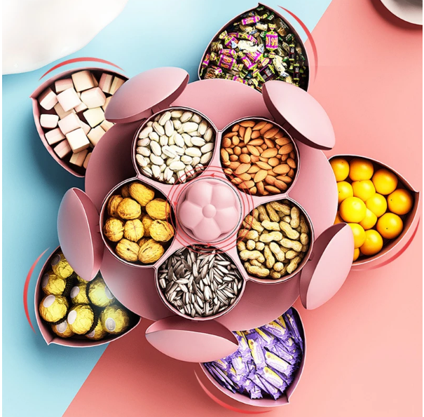 La boite a bonbon et fruit sec en forme de pétale est un accessoire de rangement moderne et créatif, qui rassemble a une fleur en train de d’ épanouir.