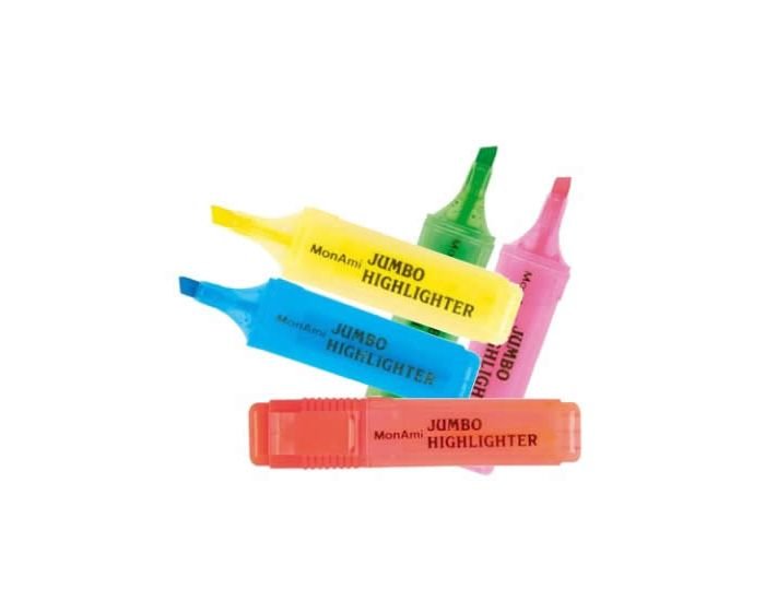 ‘- Surligneur liquide Monami Highlighter Jumbo – 5 Coloris au choix : Rose, Bleu, Vert, Orange et Jaune.