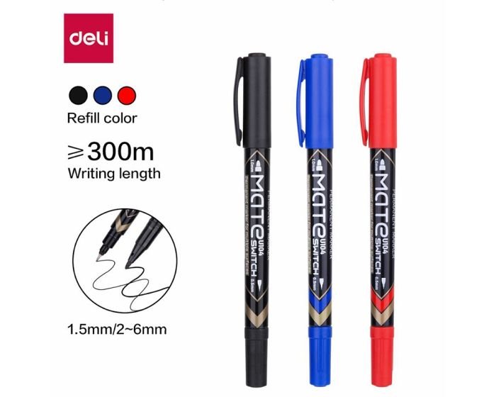 Boite de 12 Marqueurs permanents Mate de haute qualité double pointe 1,0 mm Deli-U104 coloris au choix