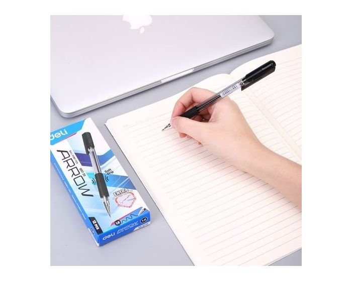 Boîte de 12 stylos à bille Arrow 1.0mm Deli EQ01720 noir est un article de papeterie indispensable dans le cartable des étudiants, des étudiants et du monde du bureau.