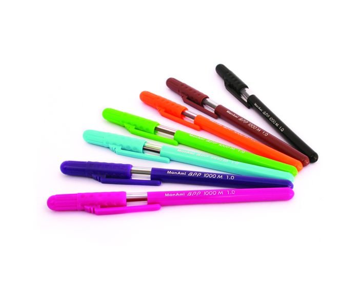 ‘- Stylo bille – En carbure de tungstène indéformable – Ecriture régulière – Pointe moyenne 1 mm – Couleurs Assorties : Bleu, noir, rouge, vert, rose, orange, vert claire, bleu ciel, violet, marron.