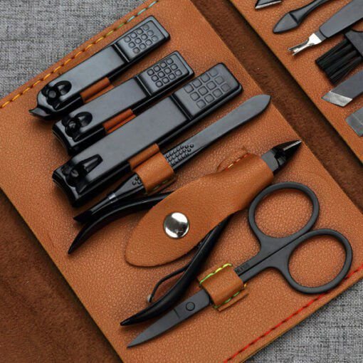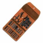 Kit de manucure 16 pièces professionnel coupe-ongles Kit de pédicure – Kit d’entretien en acier inoxydable Outils de soin des ongles avec sac de voyage en cuir (marron)