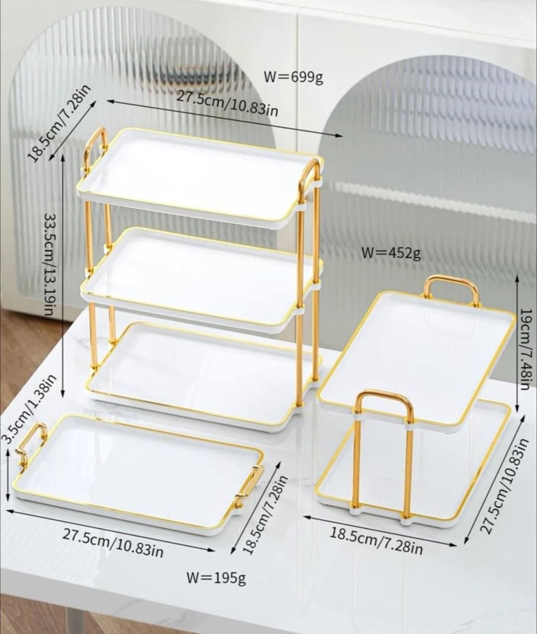 Plateaux Présentoir de 3 niveaux en plastiques Rectangulaire multi-usages-Blanc