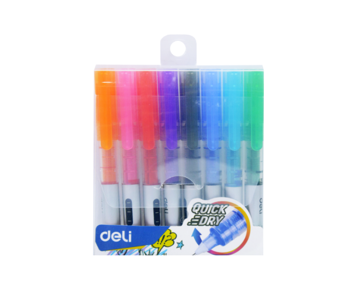 Pochette de 8 stylos rollers encre gel Deli-Q300-8C THINK Pointe de 0.5 MM Assorties