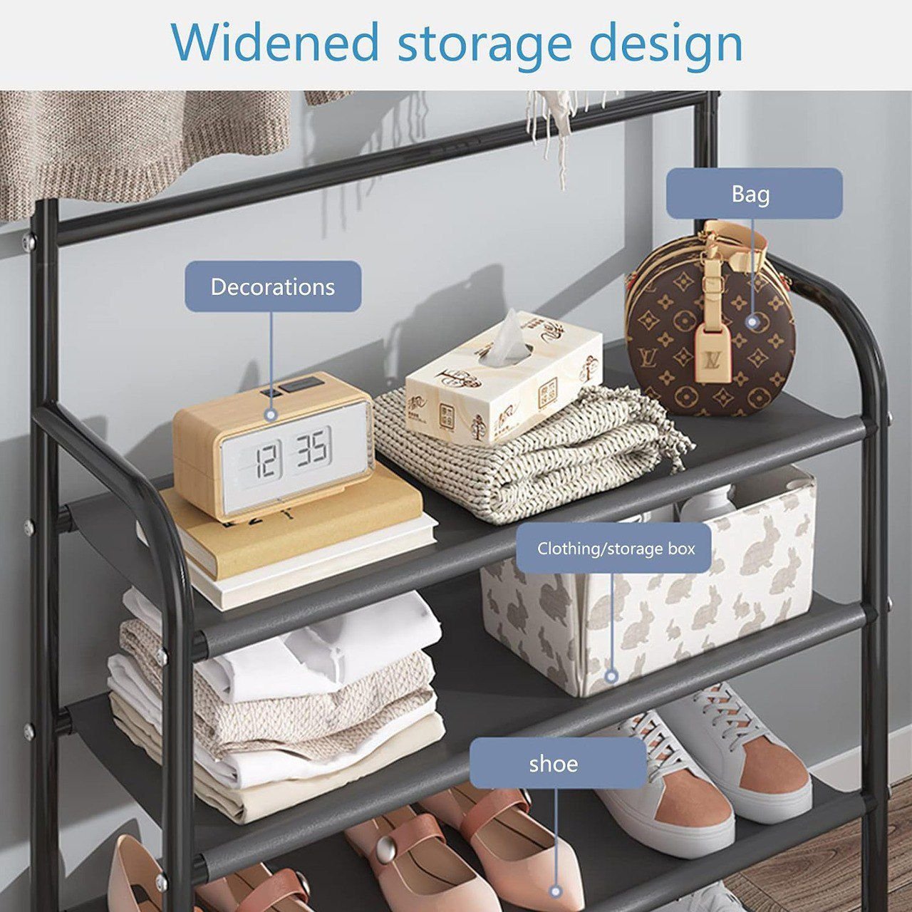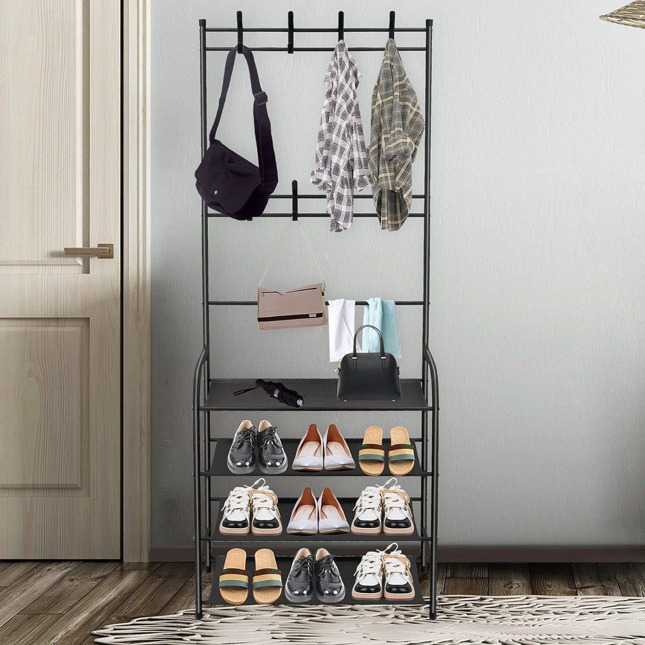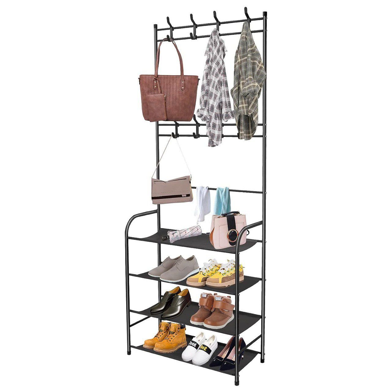 -Anti-rayures: utilisez un plastique de haute qualité, difficile à casser, prenez soin de l’usure, protégez le manteau et empêchez le crochet-Support de chaussures accru: conception élargie du support de chaussures, tuyau de haute qualité, stockage multicouche