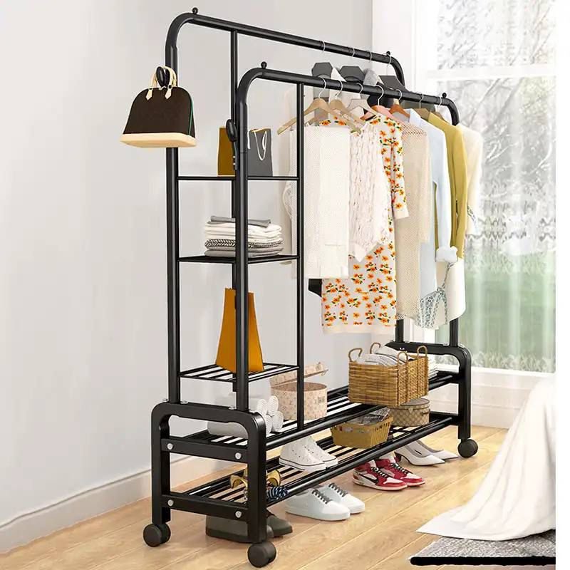 Mobile Porte-Vêtements En Métal Suspension Autoportante Avec Double Pôle De Double Couche étagère De Rangement Portemanteau Pour Accrocher De Vêtements, 135/160cm